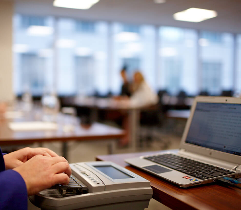 Our court reporters offer the highest professional standards in out-of-court examinations, arbitrations, certified court transcripts and more. Our reporters and transcriptionists have been security cleared with the federal government to a minimum of Enhanced Reliability, which means we can handle even the most confidential matters.